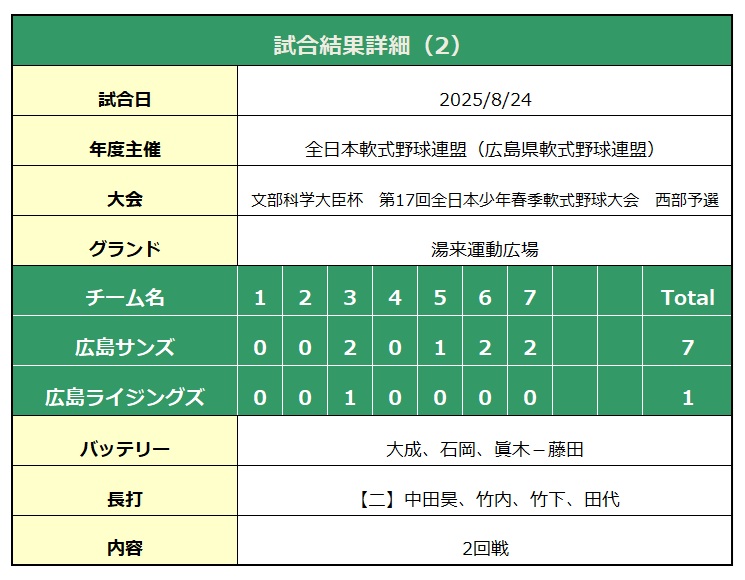 2025-08-24 文部科学大臣杯第17回全日本少年春季軟式野球大会西部予選 vs広島ライジングズ