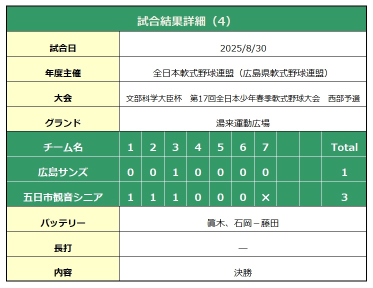 2025-08-30 文部科学大臣杯第17回全日本少年春季軟式野球大会西部予選 vs五日市観音シニア