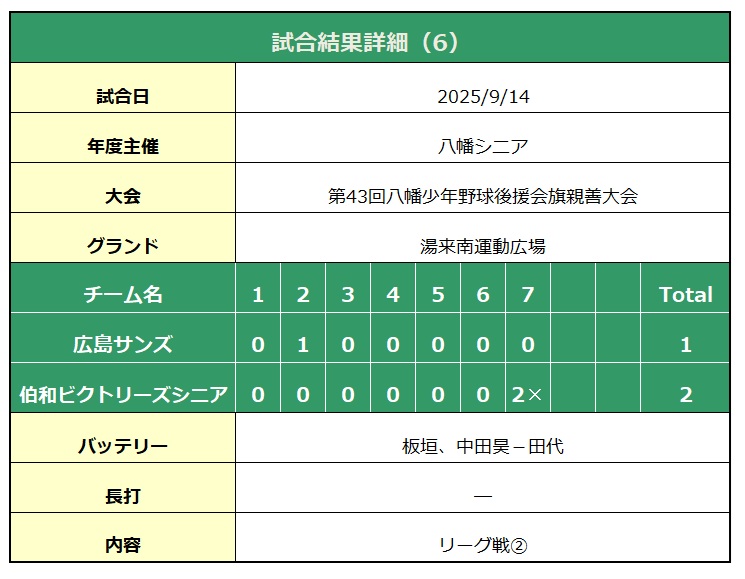 2025-09-14 第43回八幡少年野球後援会旗親善大会 vs伯和ビクトリーズシニア
