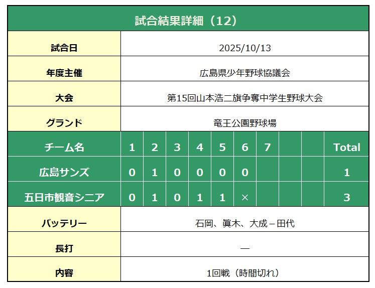 2025-10-13 第15回山本浩二旗争奪中学生野球大会 vs五日市観音シニア