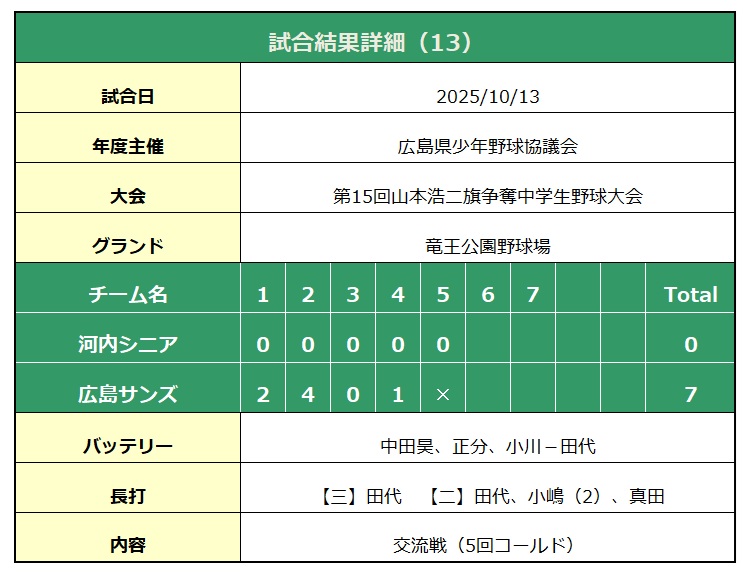 2025-10-13 第15回山本浩二旗争奪中学生野球大会 vs河内シニア
